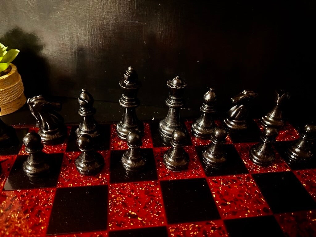 Jedes Schachbrett ist ein Unikat, gefertigt aus hochwertigen Epoxidharz in individuellen Farbgestaltungen. Die Oberfläche ist glatt, glänzend und robust - perfekt zum Spielen und gleichzeitig ein echter Blickfang . Kleine Lufteinschlüsse oder Schlieren können auftreten und machen jedes Brett einzigar